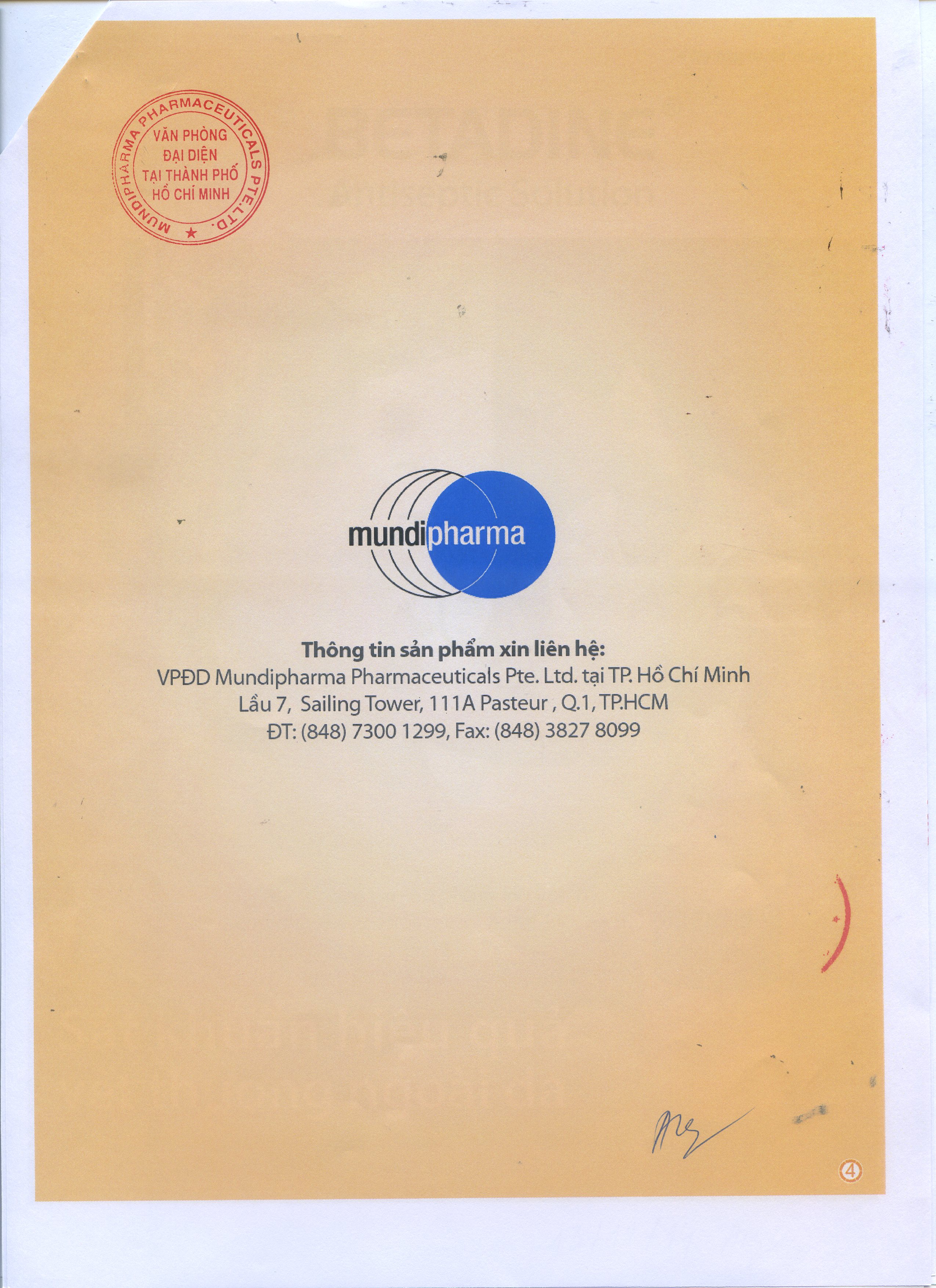 VPĐD công ty Mundipharma Pharmaceutical Pte. Ltd. |