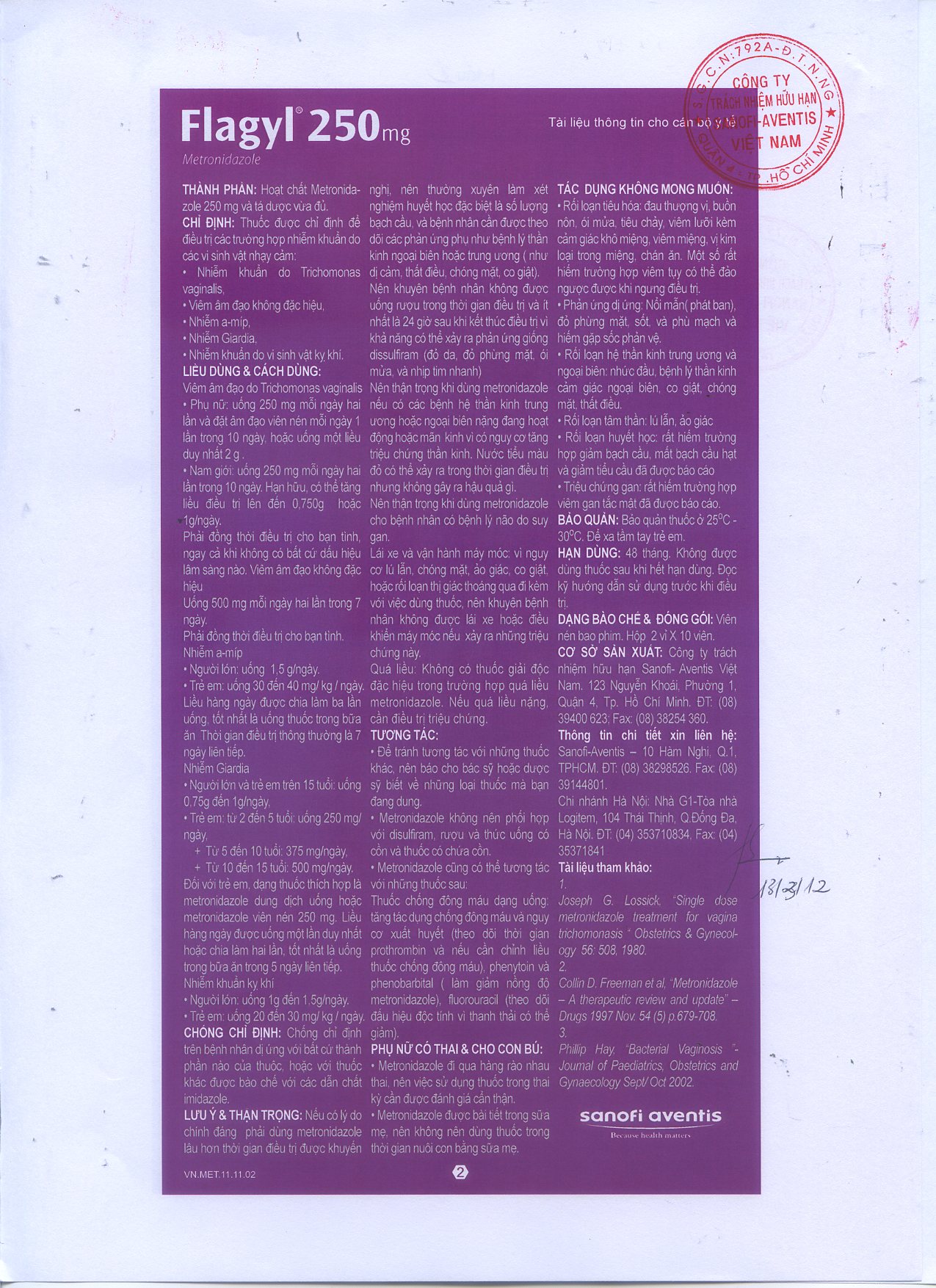 Flagyl 250mg (Mẫu 2) |